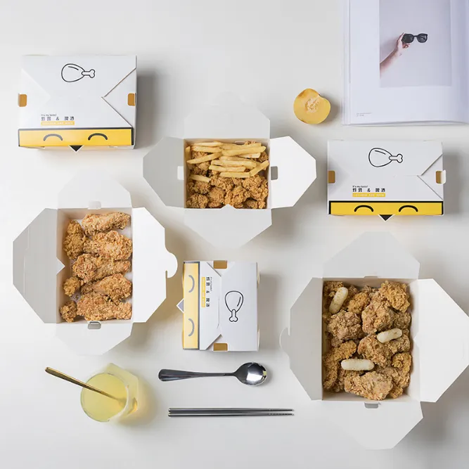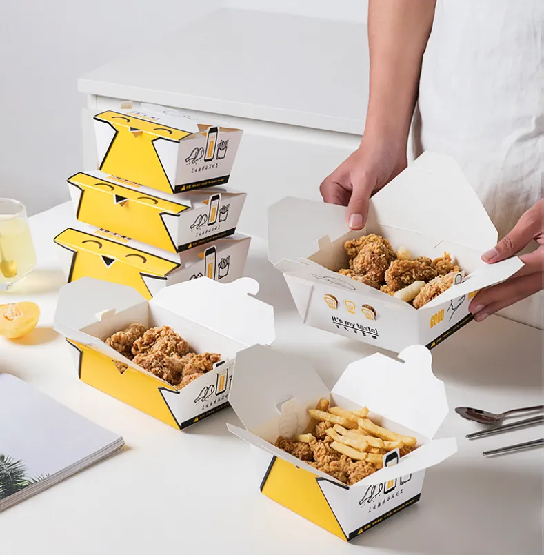 Zemeijia fabrikak ekoitzitako oilasko frijitua elikagaien industriarako bereziki diseinatutako oilasko frijitua paperezko ontzia da. Oilasko frijitua elikadura-kaleko kartoiarekin egina dago, beroarekiko eta olioarekiko erresistentea dena, zigilatzeko eta isolatzeko propietate onak dituena, oilasko frijituaren freskotasuna eta tenperatura eraginkortasunez mantendu ditzaketenak. Zemejia fabrikak pertsonalizatutako inprimaketa onartzen du, ongi etorri erostera