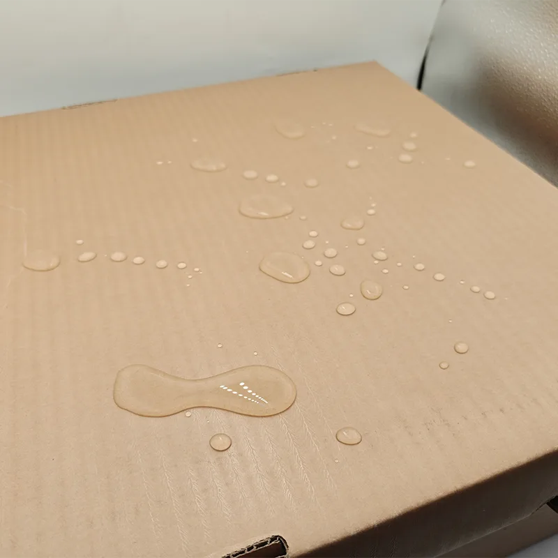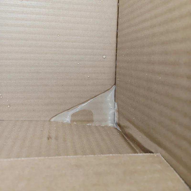 ● Sukaldean gordetzeko, egun euritsuetan garraiatzeko eta ura topa dezaketen produktu freskoen fakturazioa bezalako agertokietarako, kutxaren kanpoaldea guztiz estalita dago elikagaien kalitateko argizarizko film gardenarekin. Soja-saltsa edo ura ustekabeko isuriak zapi batekin erraz garbi daitezke, eta argizarizko filma ez da zurituko edo hezetasuna paper-geruzetan sartzen utziko, kutxa leuntzen delarik. Euri zipriztin laburren kasuan ere, ez da ur-markarik egongo, eta kutxaren gogortasunak ez du aldaketarik izaten.