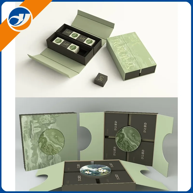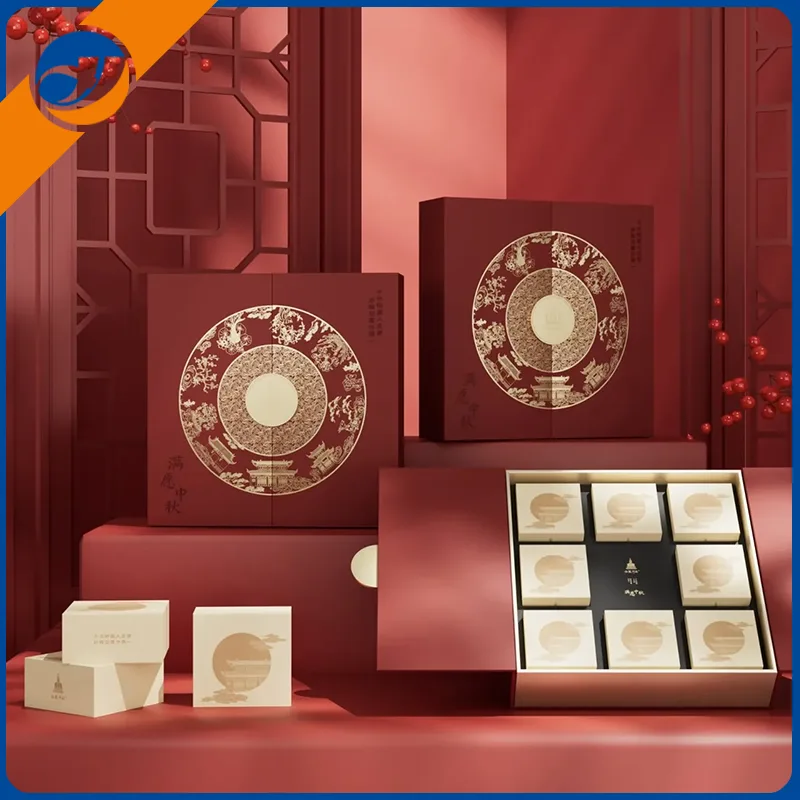 Udazkeneko erdialdeko jaialdiko opari kutxa ontziakKanpoko ontziak: normalean 157g estalitako papera erabiltzen da film mattearekin (ukitu delikatua, marradura erresistentea eta higadurarekiko erresistentea), 250g txartel zuria, film poltsikoarekin (urrezko tratamendu beroa), tekla baxua eta luxuzkoa.