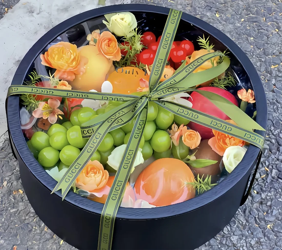 Fruta opari dotoreaModan dagoen itxura du diseinua eta zentzuzko barne egituraren diseinua. DiseinuaFruta opari dotoreamarkaren elementu kulturalak txertatu ditzake, hartzaileak markaren xarma sentitu dezan fruitu goxoa dastatzean. BarrutikFruta opari dotoreaZinta bikainekin edo zorion-txartelekin ere etor daiteke, ustekabeko sorpresa hartzaileari ekarriz.
